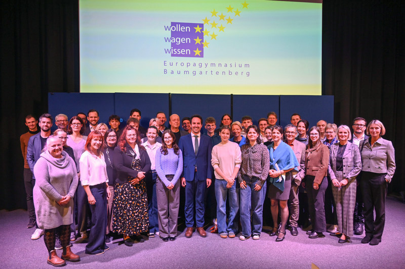 Unter diesem Motto präsentierte sich das Europagymnasium beim Besuch des Bundesministers für Bildung Christoph Wiederkehr. Als offene, zukunftsorientierte Schule, die regionale Verantwortung übernimmt und den Dialog mit der Bildungspolitik aktiv sucht, lud das Gymnasium zu einem offenen Austausch über Bildung ein.