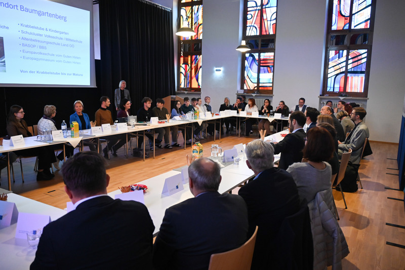 Beim Bildungstalk diskutierten Vertreter:innen des Schulvereins, des Elternvereins, der Bildungsdirektion, Lehrer:innen, Schüler:innen, Schulleiter:innen anderer Bildungseinrichtungen in Baumgartenberg sowie der Bürgermeister engagiert mit dem Minister.