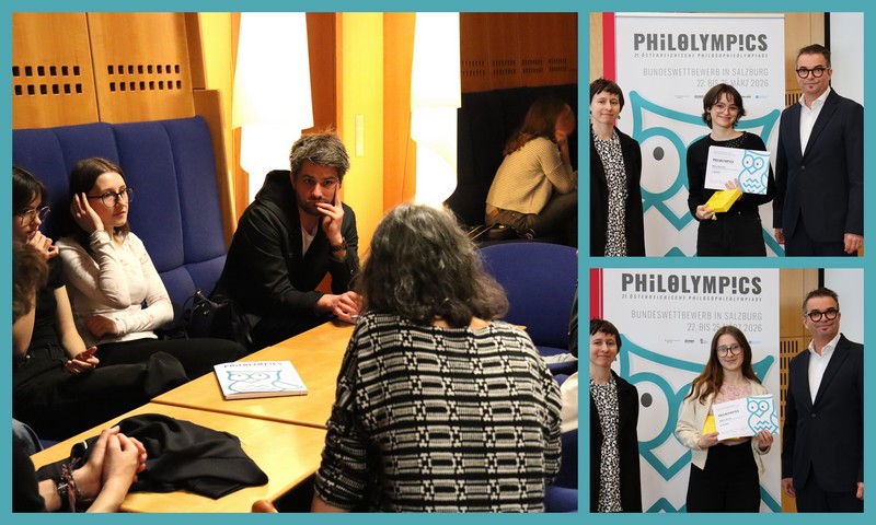 Den Kern bildete jedoch der Wettbewerb selbst. 29 Landessieger:innen aus den Bundesländern Österreichs, der Schweiz und Südtirol verfassten im Zuge der „deutschsprachigen Philosophieolympiade“ ihre Essays zu Fragen nach der Freiheit des Menschen, dem Umgang mit der Moral, dem politischen Diskurs innerhalb unserer Gesellschaft und der Bedeutung der Philosophie in unserer Gegenwart. In der Endwertung belegte Romy den siebten Platz, Sophie Platz fünf. Nun, was lernen wir unmittelbar, wenn wir beginnen zu philosophieren? Die Wahrnehmung ist immer abhängig vom Maßstab, mit dem gemessen wird (Der antike Philosoph Protagoras lässt schön grüßen...). Macht man sich also bewusst, dass 1.600 Schüler:innen aus ganz Österreich, der Schweiz und Südtirol am diesjährigen Wettbewerb teilgenommen haben, ist die Top 10-Platzierung beider unserer Nachwuchsphilosoph:innen ein wirklich herausragender Erfolg. Wir gratulieren herzlich!