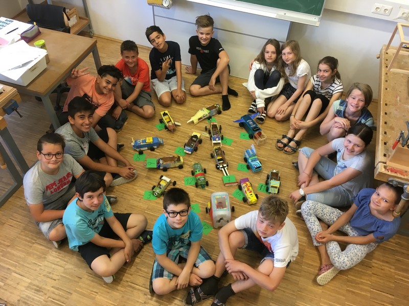 Zu ErfinderInnen und DesignerInnen wurden die SchülerInnen der ersten Klassen. Sie bekamen alle die gleichen Materialien zur Verfügung gestellt, aus denen Fahrzeuge gebaut werden sollten. Als Karosserie wurden leere Flaschen und Tetrapackungen verwendet, um Zeit und Kosten zu sparen und ökologisches Arbeiten bzw. Verwerten zu unterstützen.