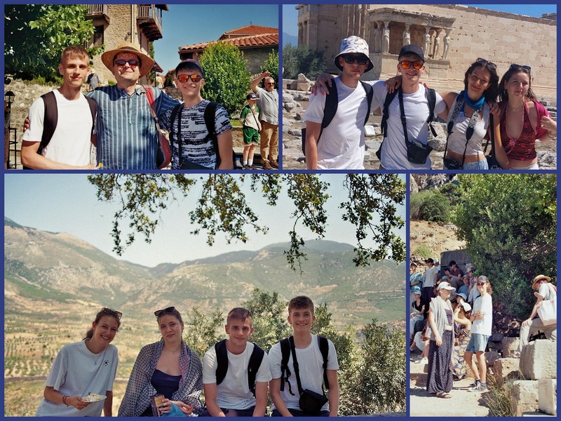 Am ersten Tag in Griechenland ging es für uns in die mystische Höhlenwelt von Perama; am Abend nahmen wir Quartier am Fuße der jener Berge, die ob ihrer Meteora-Klöster weltberühmt wurden. Tags darauf gleich einer der Höhepunkte: Wir kamen wir zum Nabel der antiken griechischen Welt, nach Delphi, wo wir – nach dem ersten Stop in Dodona – schon das zweite antike Orakel befragen konnten. Und das meinte es offenbar gut mit uns: Denn dank unserer Profi-Dolmetscherin Irini Lambrakis, L-Prof. am Linzer Privatgymnasium, durften wir selbst trotz später Stunde noch ins Museum und konnten am darauffolgenden Morgen schon das Ausgrabungsgelände zu erkunden.