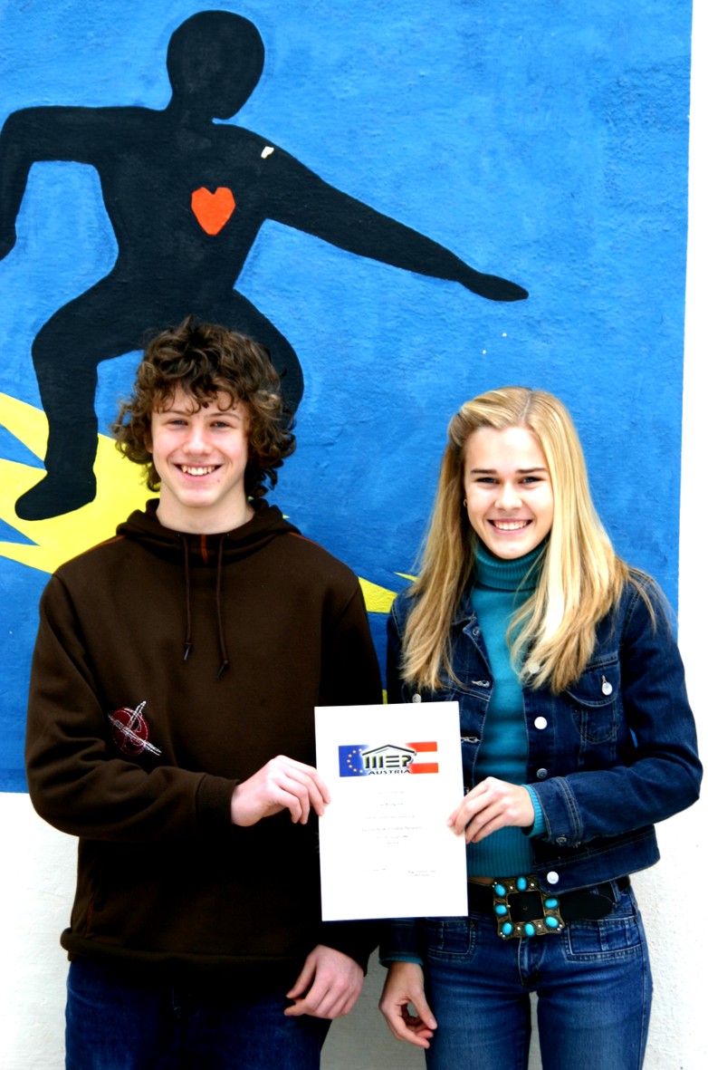 Die Schüler Lisa Wolfsgruber und Paul Haller der Klasse 6b nahmen erfolgreich an der „national session" des Model European Parliament vom 26.1. – 29.1. 2006 in Salzburg teil. Lisa und Paul waren in den Bereichen Transit und EU Erweiterung tätig und erarbeiteten konstruktive Vorschläge für die Zukunft Europas.Beide haben die Teilnahme als Bereicherung und interessante Erfahrung beschrieben und wir können uns über eine ausgezeichnete Beurteilung unserer Schüler freuen. Lisa Wolfsgruber konnte sich durch ihre sprachliche und inhaltliche Kompetenz als einzige Vertreterin des Bundeslandes Oberösterreich für die internationale Sitzung in einer europäischen Hauptstadt qualifizieren.