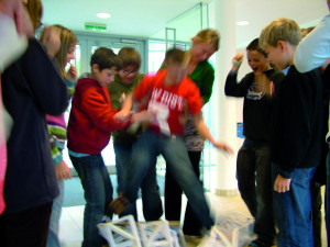 In einem Werkprojekt der ersten Klassen ging es hoch hinaus. Die SchülerInnen bauten aus Tuschpapier ihr eigenes Podest. Alle meisterten die Herausforderung, eine Millimeterarbeit herzustellen, einwandfrei
