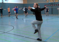 Konditionstraining, verpackt in moderne Musik und Choreographie – so gestaltete der ausgebildete Tanz- und Aerobictrainer David Lettner den BSP-Unterricht mit den 7. Klassen. Besonders die Mädchen bewiesen großen Eifer. Ins Schwitzen kamen jedoch alle – sei es aus konditionellen Gründen, sei es aufgrund von kleineren Koordinationsschwierigkeiten aufgrund der gar nicht so einfachen Schrittkombinationen. Der Spaß an der Bewegung dominierte auf jeden Fall! Aufgrund des großen Erfolgs lautet die Devise: „Fortsetzung folgt"!| Fach: | BSP | Klassen: | 7ab | Wann: | März 2009 | <<Zurück |