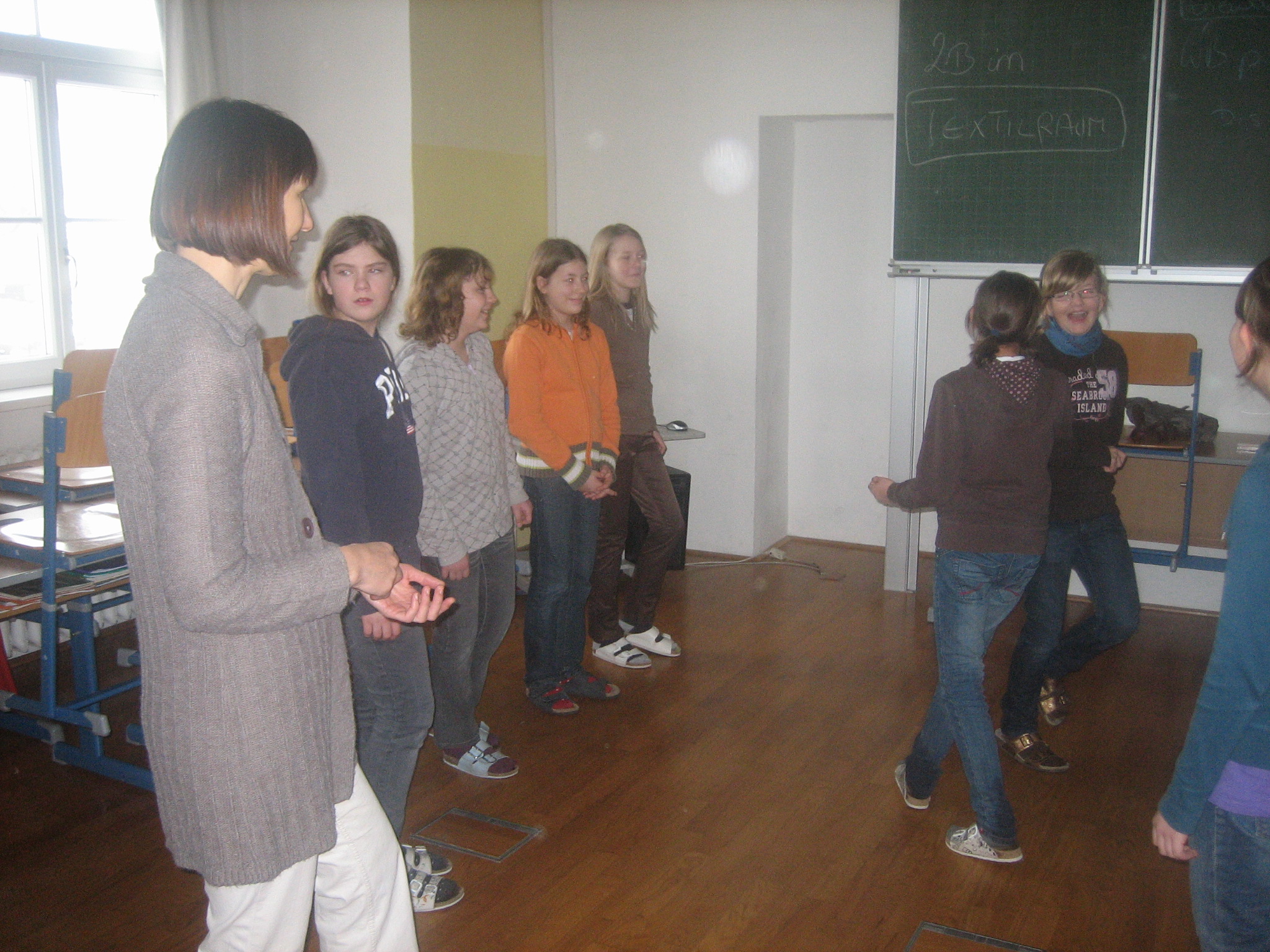 On Monday, 30th March, 2a and 2b students showed a lot of enthusiasm, ambition and talent dancing along to the lively and quick rhythm of Scottish music. The traditional choreography was taught by Anna Kowal, an English native speaker, who ran this fun workshop. This project was intended to bring the students closer together and strengthen the community spirit in the class. However, the students did not only delve into Scottish dancing; by doing extensive research on the internet, they found out more about Scotland, from kilts, lochs and highland cattle to tartans, haggis and clans.| Fach: | E | Klassen: | 2ab | Wann: | März 2009 | <<Zurück |