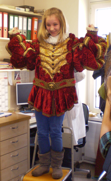 Im Rahmen des Schwerpunktes "Oper, Opernhaus, Opernberufe" besuchten die 3a und die 3c das Landestheater in Linz. Eine Führung durch das Haus ließ die SchülerInnen die erlernten Inhalte hautnah erleben. Uns wurde die Hauptbühne mit Unterbühne, Schnürboden und Orchestergraben gezeigt, aber auch die Werkstätten stießen auf starkes Interesse, ob die Tapeziererei, die Kaschiererei, die Schneiderei, der Kostümfundus oder der Malersaal. In der Schneiderei durfte sogar ein soeben angefertigtes Kostüm probiert werden.